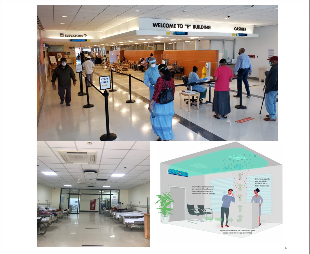 Việc ngăn chặn sự lây lan của coronavirus, SARS, bệnh lao, bệnh cúm và các bệnh truyền nhiễm qua đường không khí khác đòi hỏi một cách tiếp cận nhiều mặt. Ngoài các công nghệ thông gió và lọc không khí thích hợp, đèn chiếu tia cực tím diệt khuẩn (UVGI) còn khử hoạt tính của vi khuẩn trong môi trường phía trên của khu vực, giúp ngăn ngừa sự lây lan của virus, vi khuẩn để bảo vệ bệnh nhân, nhân viên y tế và những người có nguy cơ tiếp xúc.